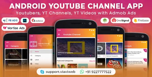 Android YouTube Channel App (Youtubers, YT Channels, YT Videos) with Admob Ads