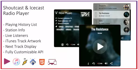 This is a fully flexible SHOUTcast & Icecast web radio player plugin based on HTML5 and jQuery. It pulls metadata and streaming data directly and updates the interface automatically.