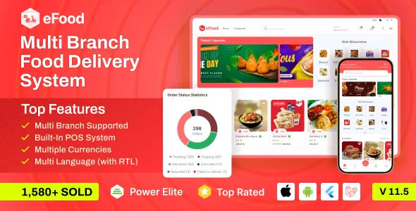 eFood is a multi-affiliate food delivery restaurant management system that comes with a custom app, website, and delivery app. With this powerful system. You will get a powerful admin panel built with the Laravel Framework to help you manage your entire system intelligently, speeding up your restaurant business.