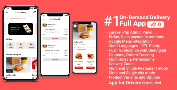 Food Daily - An On Demand Android Food Delivery App, Delivery Boy App and Restaurant AppFood Delivery Multi Restaurant Ionic 5 + CodeIgniter (Android + iOS + Website + Admin) v2.0Food Star v1.0.8 - Mobile React Native Food Delivery TemplateKhana - Multi Restaurants And Food Delivery Customer AppDelivery Person for Food, Grocery, Pharmacy, Stores React Native - Wordpress Woocommerce AppFood Explorer - Single Restaurant Food Delivery App with Delivery Boy in FlutterNative Restaurant Food Delivery & Ordering System With Delivery Boy - AndroidGrocery, Delivery Services, eCommerce Multi Vendors (Android + iOS + Website) Ionic 7, Laravel