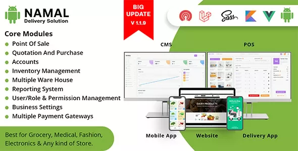 Namal Grocery Delivery Solution is a finished Platform to effectively begin your online Grocery business(Single & Multiple Location). It has an incredible administrator board for overseeing items, classifications, orders, reports, POS, Purchase, Sale, Accounts and Inventory Management features.