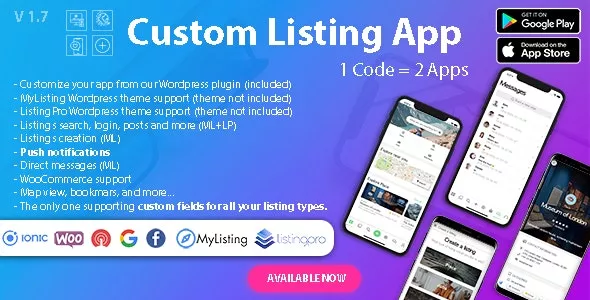 Custom Listing App is a mobile app developed using the new Ionic 5 technology, it is totally integrated with MyListing theme supporting custom fields and your settings, easy to be used and customisable using our plugin form your website.