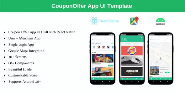 Coupon Offer App is a coupon and reward App built with React Native for Android and iOS platform. There are two apps in the source-code that is User and Merchant Application.