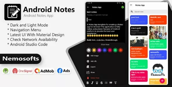 A Notes App template for creating a Notes App for Android! The application is fully native, using latest features of Android platform to provide the best user experience.