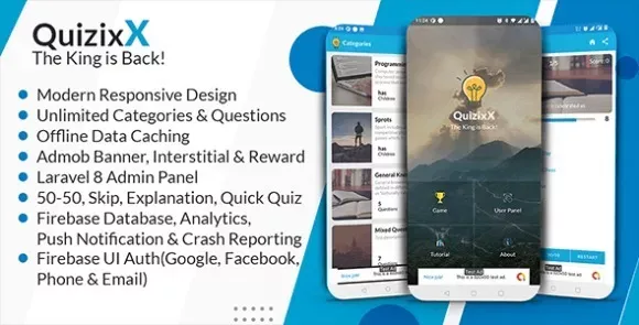 Quizix X - Android Quiz App with AdMob, FCM Push Notification, Offline Data Caching