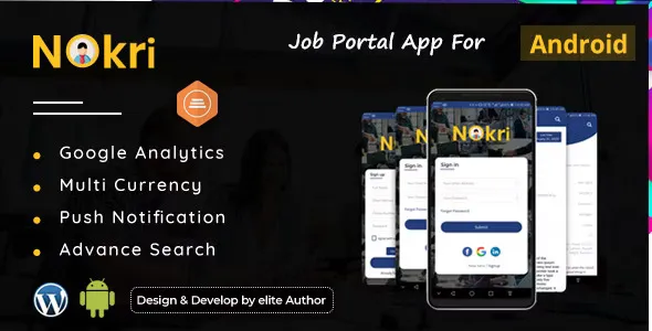 Nokri - Job Board Native Android App is an advanced job board Android App. It contains all the required features for creating a successful job portal website. Nokri is a complete and easy to use job listings website. Using Nokri Job Board Native Android App you can create a complete & fully Responsive job portal, career platform to run human resource management, recruitment, freelancing or job posting website.
