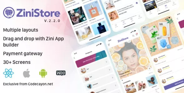 ZiniStore v2.2.0 - Full React Native Service App for Woocommerce