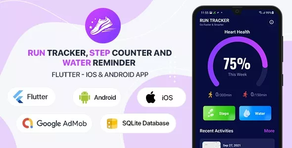 Run Tracker, Step Counter and Water Reminder v1.4 - Flutter Android & iOS App (20 Languages)
