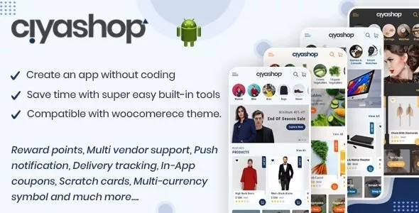 CiyaShop native Android application is the perfect solution for your shopping business or your client shopping store as an agency or freelancer. It Engages consumers to constitute Loyalty with sharp design and features which make sense for the online shop. It is well-suited for retail stores, marketplaces, fashion shops, cosmetics and household appliances of any size.