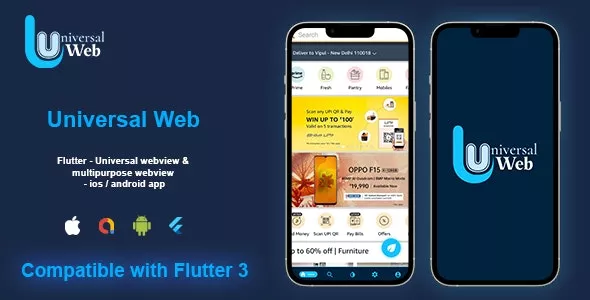 Flutter UniversalWeb Multi-Purpose Android / iOS Application Complete solutions available using UniversalWeb app source code, create your app in just few minutes without coding skill.