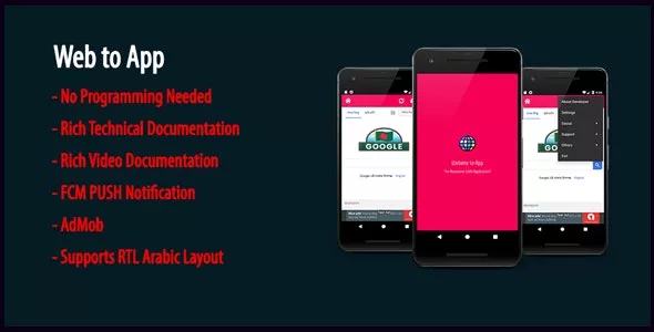 Tutorial App with Quiz - Native Android Offline Learning App with AdMob & Firebase PUSH NotificationMy Book - Native Android Book App, Quiz, AdMob, FCM PUSH NotificationUniversal Android WebView AppWebToNative - Advanced Android Webview ApplicationBlog and News app for WordPress Site with AdMob and Firebase Push NotificationWebDroid - Android WebView AppSpaceWeb - WebView with Remote ConfigIOS WebView App
