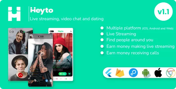 Heyto - Live Streaming (iOS, Android and Web) Paid Video calls and Dating, Payouts with Admin Panel