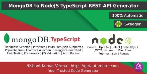 Automatically Create professional ready to use REST API from MongoDB With Postman Docs and JWT Authentication in NodeJS TypeScript.