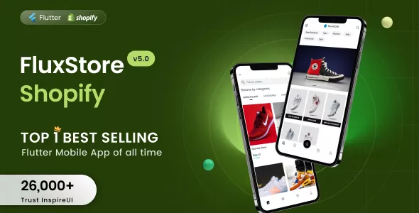 FluxStore Shopify is a Full Flutter Application that creates iOS and Android mobile apps for your existing Shopify Websites with impressive UI design and rich e-commerce functionalities.