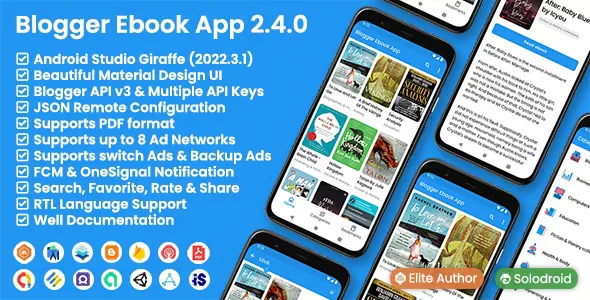 Blogger Ebook App displaying posts or contents from Blogger Site with Ebook Application template format. It loads all Blogger posts, labels and shows in a beautiful and well designed layout as Ebook Application. Run under Android platform and built using Android Studio with Java Programming Language so make the app run natively, fast and smooth. Implement Google Material Design UI make the app beautiful in design and user experiences.