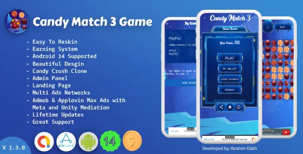 Candy Match 3 Game with Earning System and Admin Panel + Landing Page v1.3.0
