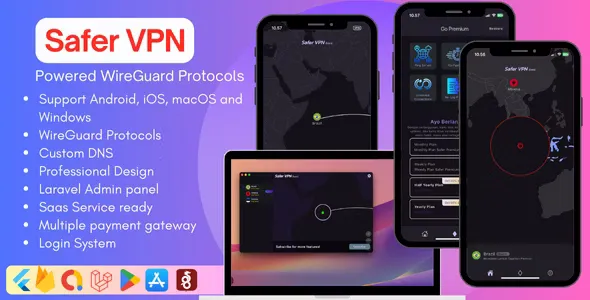Safer VPN App for Android, iOS, macOS and Windows, seamlessly integrated with the new backend Admin Panel, WireGuard Protocols, and rest api wireguard. This apps is finely tuned and production-ready, requiring only the configuration of your details for a smooth release on your Google Play Store or Apple Store account.