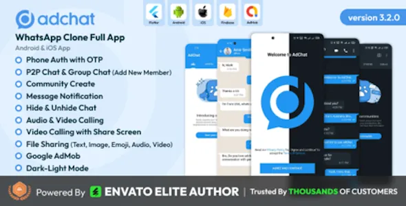 AdChat is a complete WhatsApp Clone full functional Android & iOS app. Clone App for WhatsApp Web is a utility app that will help you use multiple WhatsApp accounts on a single device. - Do you want to use multiple WhatsApp accounts on one device? - Do you want to separate your personal and professional accounts into their own dual spaces? This is perfect for you. Don’t mistake this item for a complete alternative and complement to WhatsApp, here is a limited-edition version of WhatsApp’s design. Firebase and ZEGOCLOUD are used for chatting and audio-video calling. It has also Google AdMob included, which is helping to passive income. Get this software license for entrepreneurs and start-ups. Our main goal is to provide software to entrepreneurs at a low cost.