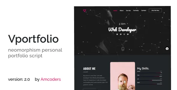 Vportfolio - Neomorphism Laravel Personal Portfolio Script