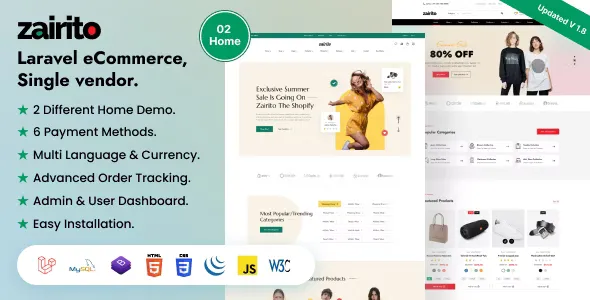 Zairito v1.8 - Laravel eCommerce System - Single Vendor