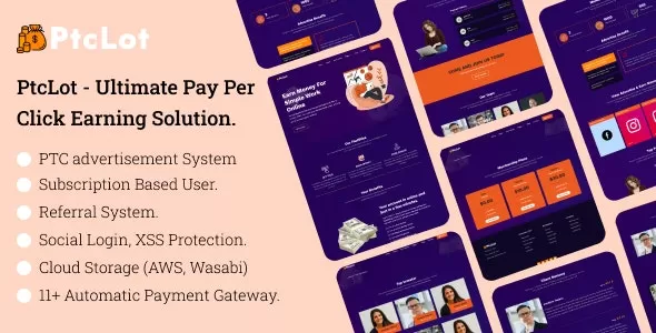 PTCLot is a pay per click (PTC) earning platform. where customers can earn from clicks on the ads and referral bonuses. The site owner can earn from the subscription plan and the admin can create unlimited ads for the customers. The script has 12+ payment getaways and unlimited offline payment getaways. PTCLot included 2 click site installer to install the script without any technical knowledge.