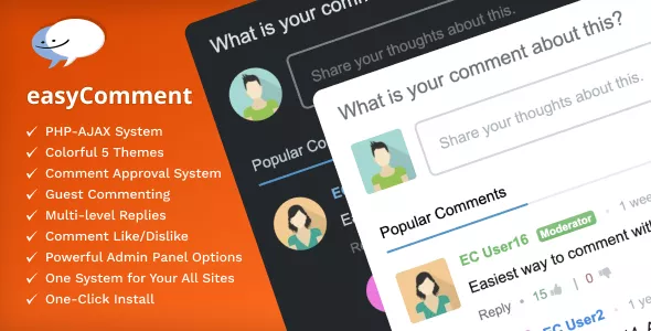easyComment is very flexible and fits into your websites with great themes. You can put a single code in your script. That’s it. It will magically create your comment space.