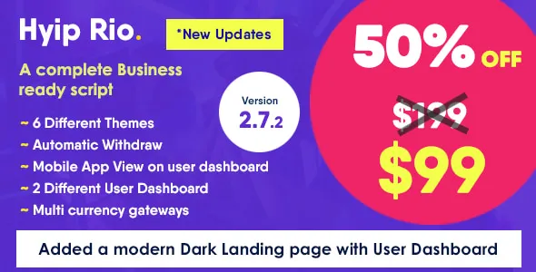 Hyiprio is an Advanced Investment System that is mainly used for the Hyip Investment Website. It is a highly secure and fast dynamic Hyip Investment Script.