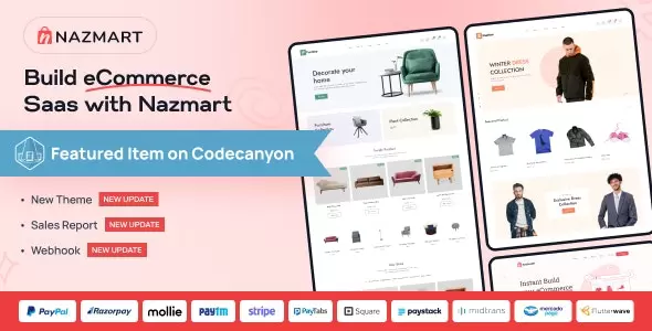 Nazmart - Multi-Tenancy eCommerce Website Builder SaaS PHP Scripts. It use Separate Database for each Tenants, so that your website load fast, has option to add custom domains. automatic subdomain creations and much more. it comes with a different 2 theme with necessary inner pages, it will help your tenant to eCommerce website easily without hassle or thinking much about design. it also has 20+ payment gateway, will more than 150 currency support. It’s highly customisable, it comes with many awesome features, like drag & drop menu builder, drag & drop form builder, drag & drop widget builder and many more. it’s compatible with Desktop, laptop, mobile and also compatible with major browsers.