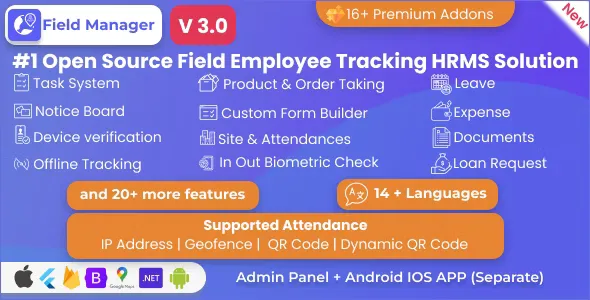 Field Manager v3.0 - Employees Realtime & Offline Tracking, Tasks, Product Order, IP, QR, Geofence HRMS