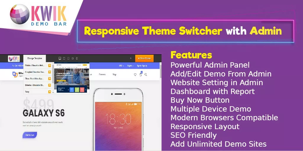 Kwik Demo Theme Switcher is used to manage, switch between your digital products like WordPress themes, HTML templates, HTML5 games and etc.