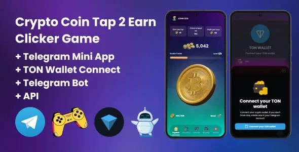 Crypto Coin Tap-2-Earn Clicker Game With Telegram Mini App + API + Bot + TON Wallet Connect