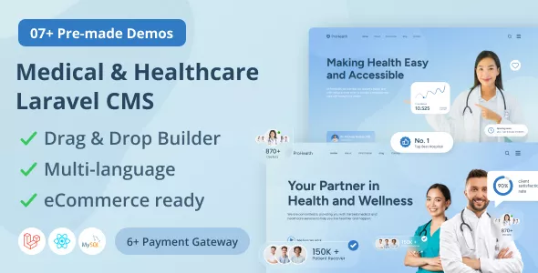Welcome to the future of digital healthcare with ProHealth Laravel Script! ProHealth is a modern, powerful healthcare solution built with Laravel, React, MySQL, and the intuitive LaraBuilder live page builder. Designed specifically for hospitals, clinics, medical centers, and healthcare professionals, this script empowers you to create a complete online medical platform with ease. With ProHealth, users can easily browse departments, find doctors, and book appointments directly from your website. Whether you’re running a multi-specialty hospital, private clinic, or telemedicine service, ProHealth offers the flexibility and features you need to provide a seamless patient experience online.