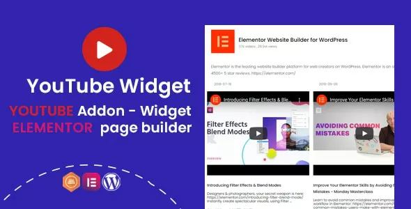 YouTube Widgets - Addon for Elementor that allows you to upload videos on YouTube from your website based on the Elementor page builder and to easily embed YouTube videos, playlists, channels to your website. With this Widgets - Addon you can create video outstanding video galleries on your website. It is designed visually in elementor compatibility. No coding required. You just need a few customizations, You will have YouTuble channel website with full features like YouTube channel, YouTube video.