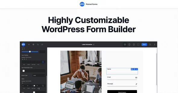 Piotnet Forms Pro is a drag and drop wordpress form builder. It helps you create shapes in minutes with many features to help you create your most amazing shape.
