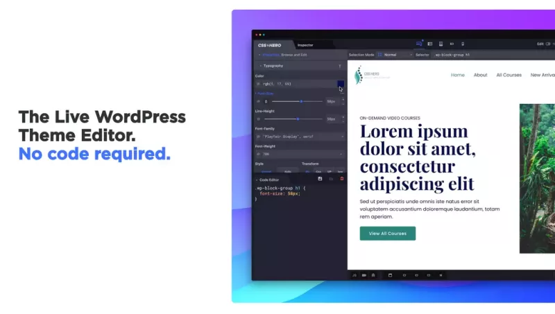 CSSHero is a premium plugin that lets you easily create your own WordPress theme without writing lines of code (no HTML or CSS).