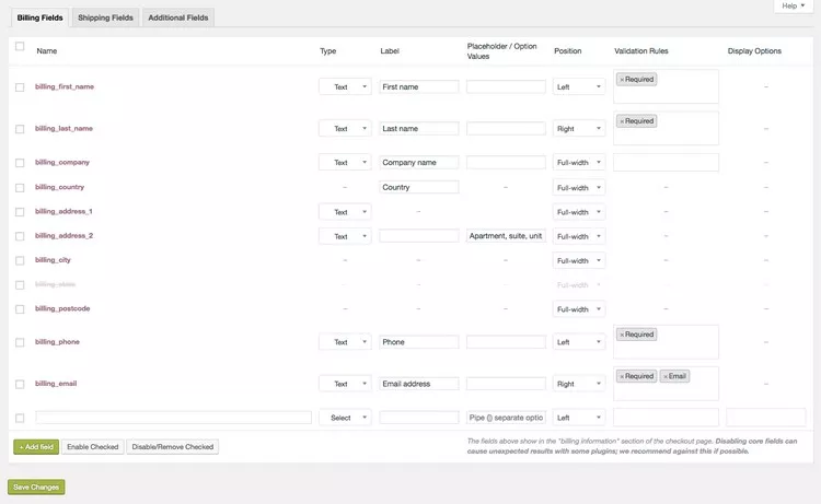 The Checkout Fields Editor provides you with an interface to add, edit and remove fields displayed on the WooCommerce checkout page.