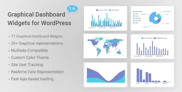 Graphical Dashboard Widgets for WordPress is a collection of wide range of dashboard widgets. These widgets display realtime data of your site in graphical or chart form. There are total 11 widgets with our 20+ graphs. Graphical statistics regarding users and site visitors, pages, posts, comments, user location, browser, platform, post category, online users etc. are represented on your dashboard.