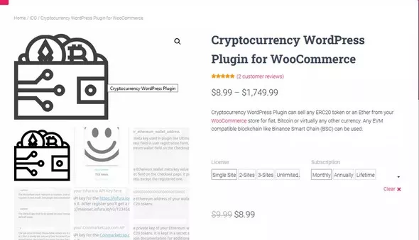 Bitcoin, Ethereum, ERC20 Crypto Wallets with ExchangePay With MetaMask for WooCommerce ProEthereum WordPress ICO Plugin PremiumCurrency per Product for WooCommerce ProCURCY - WooCommerce Multi Currency - Currency SwitcherCryptoPay WooCommerce - Cryptocurrency Payment Gateway PluginAcowebs Currency Switcher for WooCommerce ProFOX - Currency Switcher Professional for WooCommerce