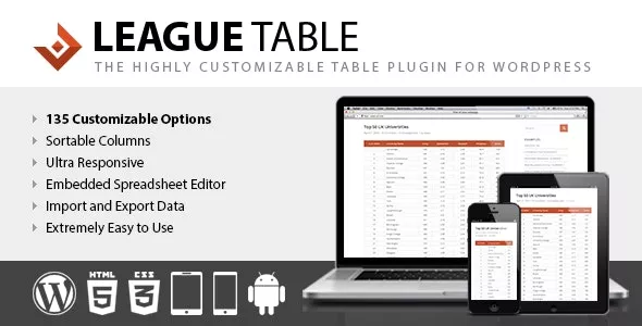 League Table is a versatile WordPress plugin that allows you to create beautiful sortable and responsive tables inside your posts, pages, custom post types or widget area.
