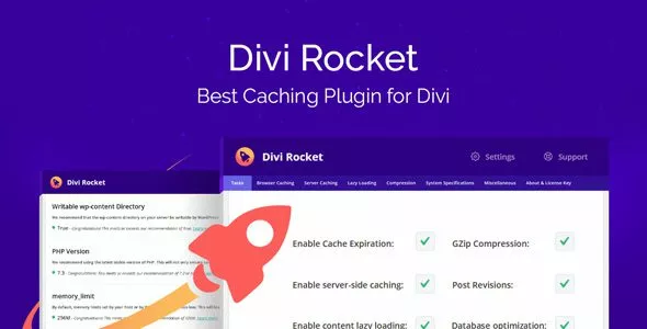 The Most Powerful Caching Plugin Specifically Designed for the Divi Theme. Divi Rocket was built from the ground up and fine-tuned specifically for speeding up the Divi Theme and has a number of features not available in any other caching plugin on the market. Since Divi Rocket was built specifically for Divi, we have optimized user interface to be as easy to use and intuitive as the Divi theme itself.