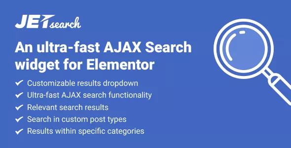 JetSearch is a powerful tool for implementing Search functionality to pages built with Elementor. The plugin provides extensive functionality made for fast and precise AJAX search. With JetSearch one gets Ajax Search widget, perfect when it comes to adding a smart Search box that allows previewing the results without reloading the page.