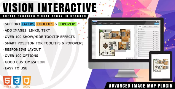 Vision Interactive is a lightweight and rich-feature plugin helps you enhance images with additional information and links. With this plugin you are able to easily annotate images with text, shapes and icons, draw attention to areas and features on images.