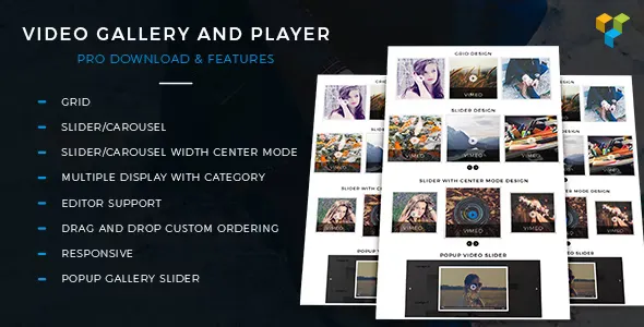 This plugin add a responsive HTML5, YouTube, Vimeo, Dailymotion and etc video gallery with Magnific Popup to your WordPress website. Display video gallery in grid view(1,2,3,4) etc. You can also use category id to create multiple video galleries.