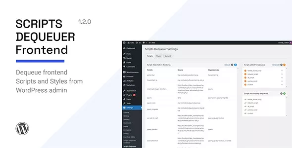 Scripts Dequeuer helps you dequeue WordPress frontend scripts and styles without touching any code. You just need to select scripts and styles from backend and they will be dequeued instantly.