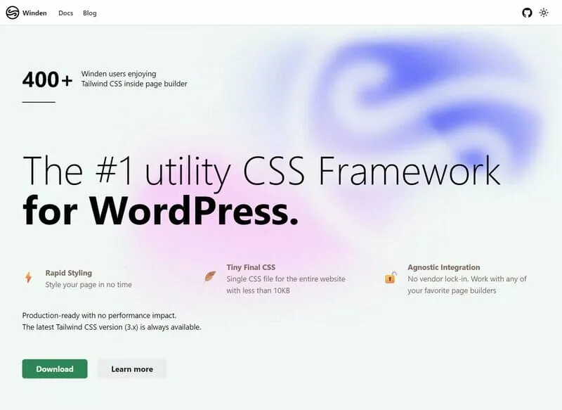 Do not lock yourself. Work with any of your favorite page builders. Build a production-ready website with no performance impact. The latest Tailwind CSS version (3.x) is always available, no need to update Winden.