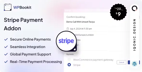 The WPBookit Stripe Payment Gateway Add-on for the appointment booking WordPress plugin simplifies payment processing for your clients. Accept secure online payments via Stripe,