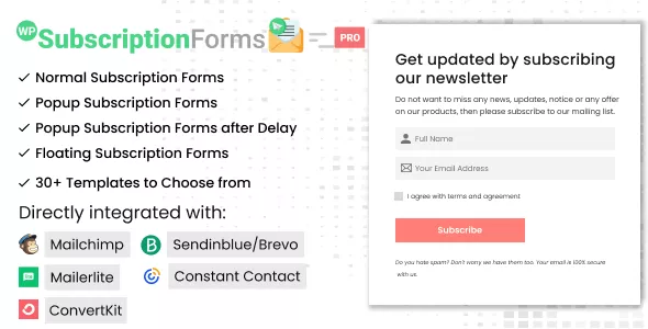 WP Subscription Forms PRO is a premium subscription form builder plugin which is very easy to use and provides you the very intuitive interface to create and integrate subscriptions forms in your site in no time.