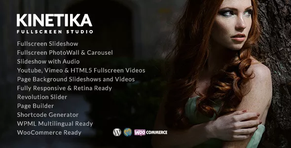 The theme is WPML multilingual ready and includes .po .mo language files for easy localization to any language. The theme is retina ready, fully responsive and easy to customize. Fullscreen slideshows and videos support displaying of Information box populated with Events, Portfolios or Blog posts. Kinetika theme has the ability to display image slideshows and videos as page background with page opacity control per page.