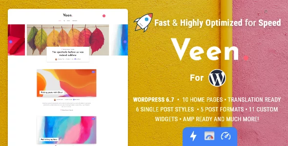 An ultra-modern blog focused on high speed and enjoyable effects. The theme is perfect for any blog, especially personal, photographic, tourist or biographical. Veen is very easy, this fast theme was created using several methods to achieve excellent results on Google, and we also take into account the quality of the code and SEO. It is easy to use and configure. Includes 11 custom widgets and a powerful theme options panel to simplify administration. Veen is compatible with AMP and is multilingual, includes: Spanish and English. and you can easily translate it into any language you want.
