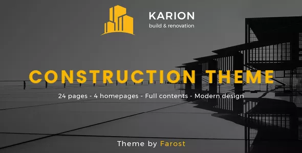 Karion is a construction WordPress theme made for construction companies, construction firms, plumbing, heating, painting, tiling, renovation, partitions and ceilings, plastering and rendering, joinery and joinery and architecture professionals.